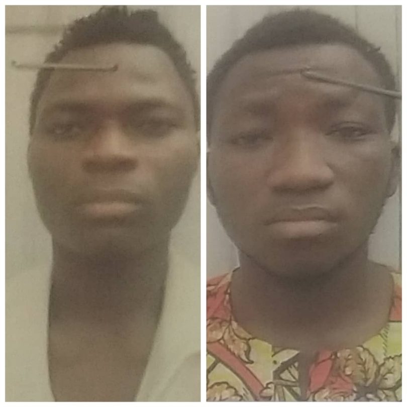 P.M.EXPRESS reports that the suspects, Agbohunon Micheal, 25 and Agbohunon Eric, 22, were alleged to have conspired with a female house maid now at large and entered the bedroom of their employer, Mr Moshood.