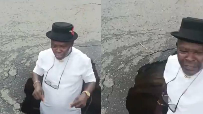 “A whole human being can stand inside it” — man raises alarm over dangerous pothole in Bayelsa