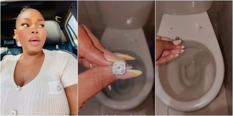 The viral clip showed the lady dropping her relationship ring into a toilet bowl and flushing it away.