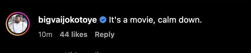 “It’s a movie, calm down,” he stated.
