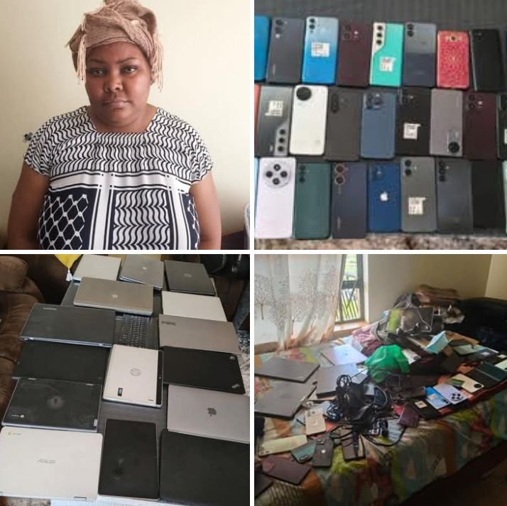 “A search of the premises yielded numerous suspected stolen items, including 40 assorted mobile phones, 14 laptops, and an iPad with a keyboard—among them items positively identified as belonging to the complainant.