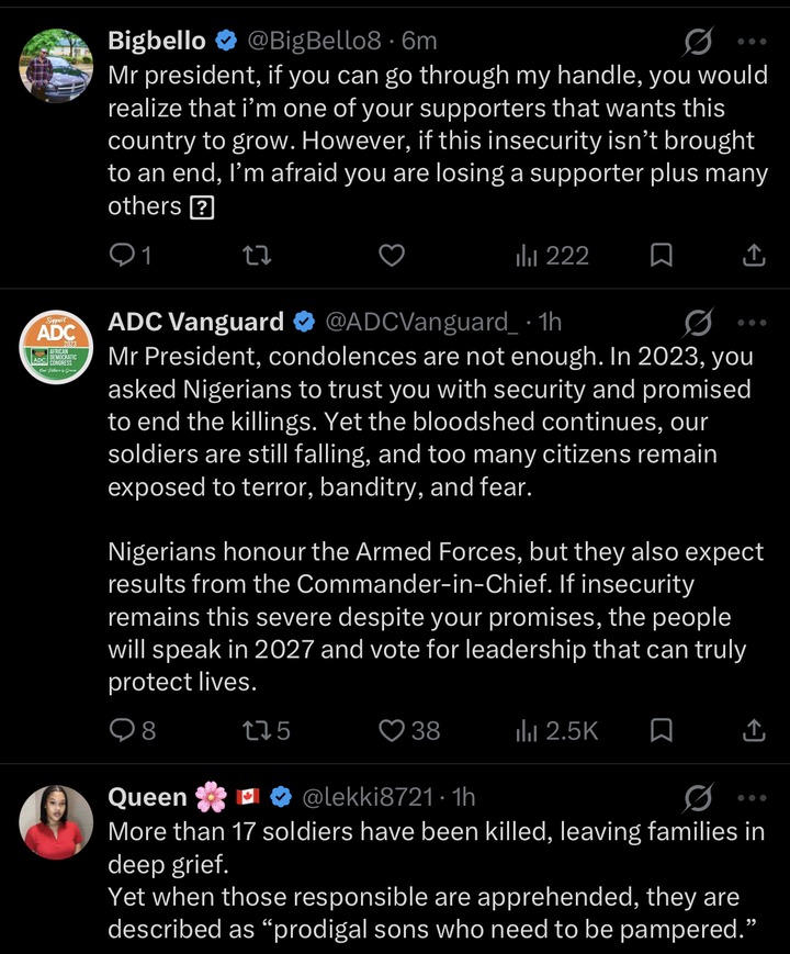 Some commentators highlighted that insecurity continues to persist despite earlier commitments from the government to end the violence. A post circulating online pointed out that Nigerians are now more interested in concrete action than statements, warning that ongoing attacks could shape political decisions in future elections.