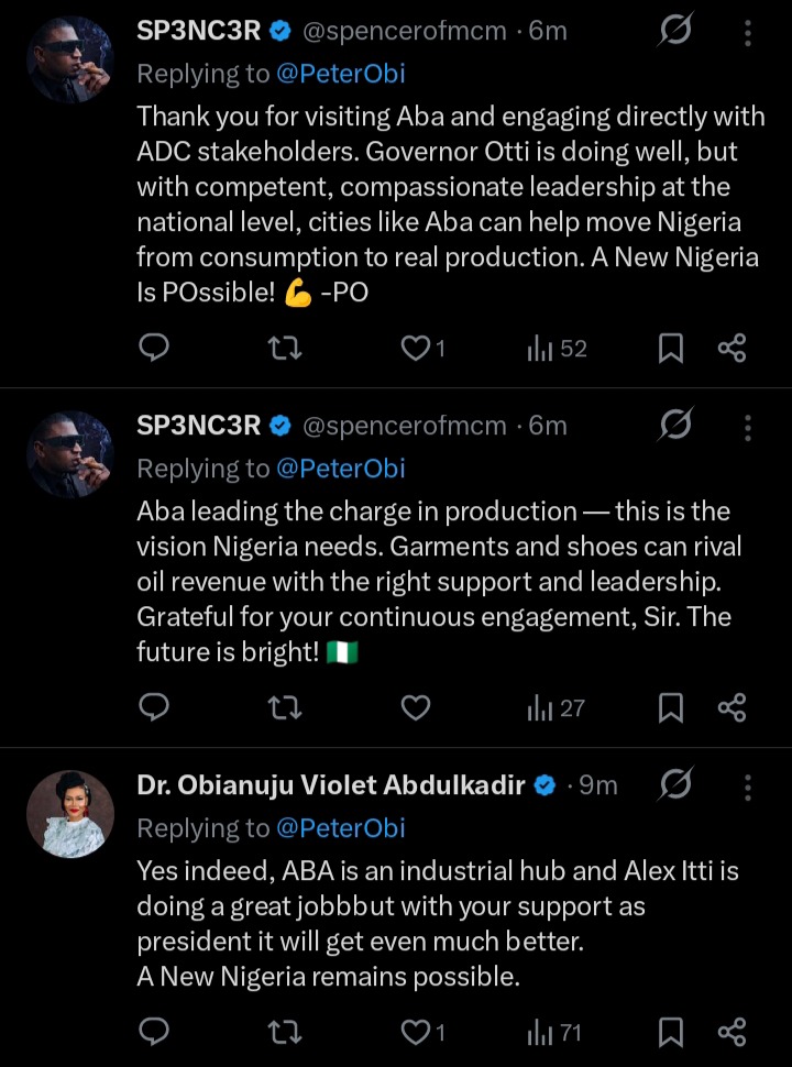 There have been several reactions from the general public and particularly social media users after the former governor of Anambra State, Peter Obi was spotted addressing a mammoth crowd of African Democratic Congress, ADC supporters in Aba, Abia State. According to the statements which were shared on his official X handle, he pointed out that he was invited by Senator Enyinnaya Abaribe.