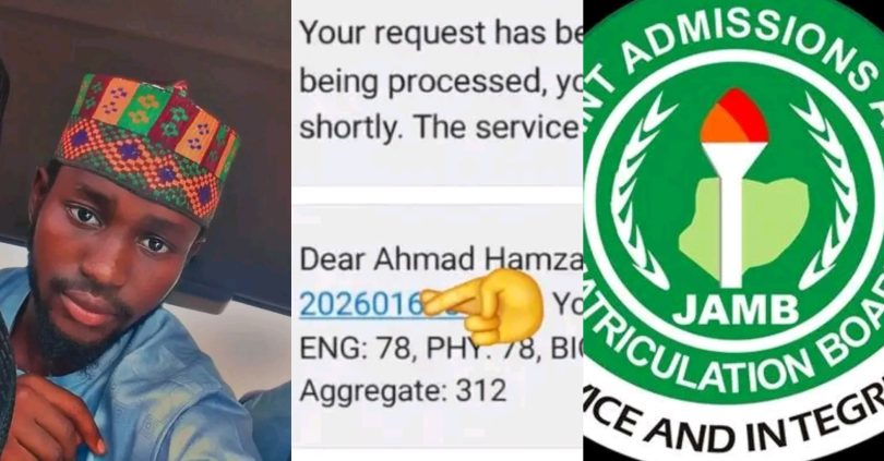 A screenshot attached to the post showed he scored 78 in English Language, 78 in Physics, 79 in Mathematics, and 77 in Chemistry, totalling 312.