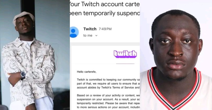 Popular comedian, Carter Efe’s Twitch account has temporarily been suspended following his record-breaking livestream with Afrobeats superstar, Davido.