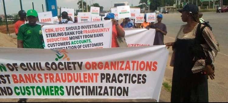 A Coalition of Civil Society Organizations against Banks Fraudulent Practices and Customers Victimization, on Wednesday, staged a peaceful protest at the Abuja headquarters of Central Bank of Nigeria and an Abuja branch of Sterling Bank Plc.