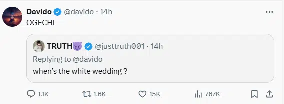 The couple’s lavish traditional ceremony had left fans curious about their next step, and Davido has now addressed the speculation surrounding their potential white wedding.