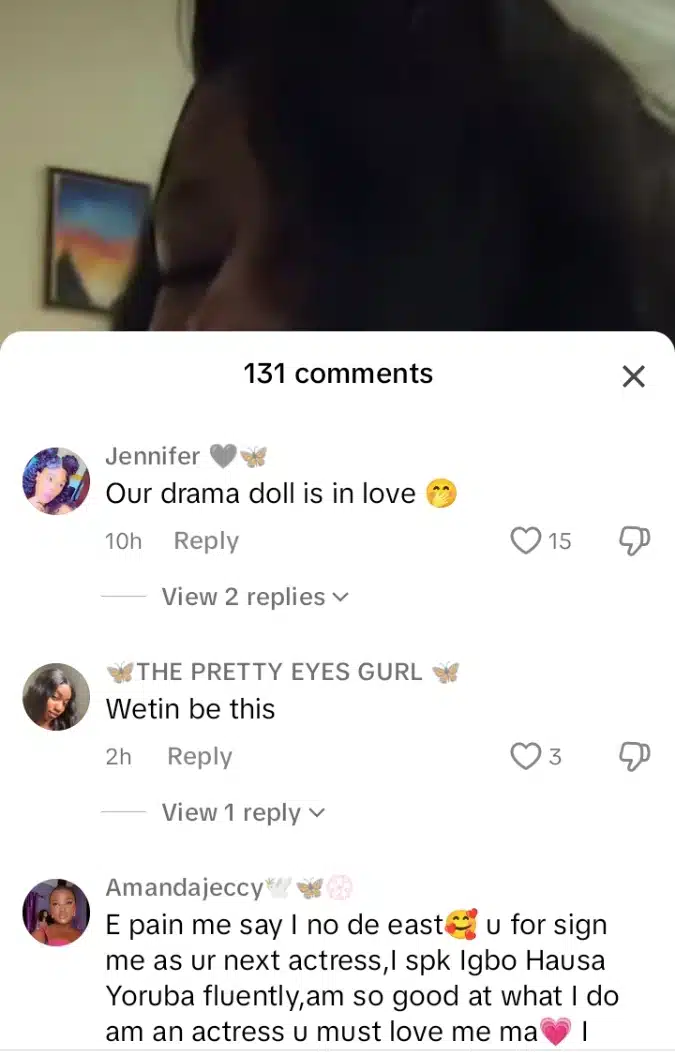 During a live video on her TikTok account which has over 5 million followers, the actress was seen on her bed giving a flirticuous face as she sang the track, None other than “Fall in Love” by the legendary Afrobeats icon D’banj, Destiny poured her heart, her face lighting up with passion and adorned with love.