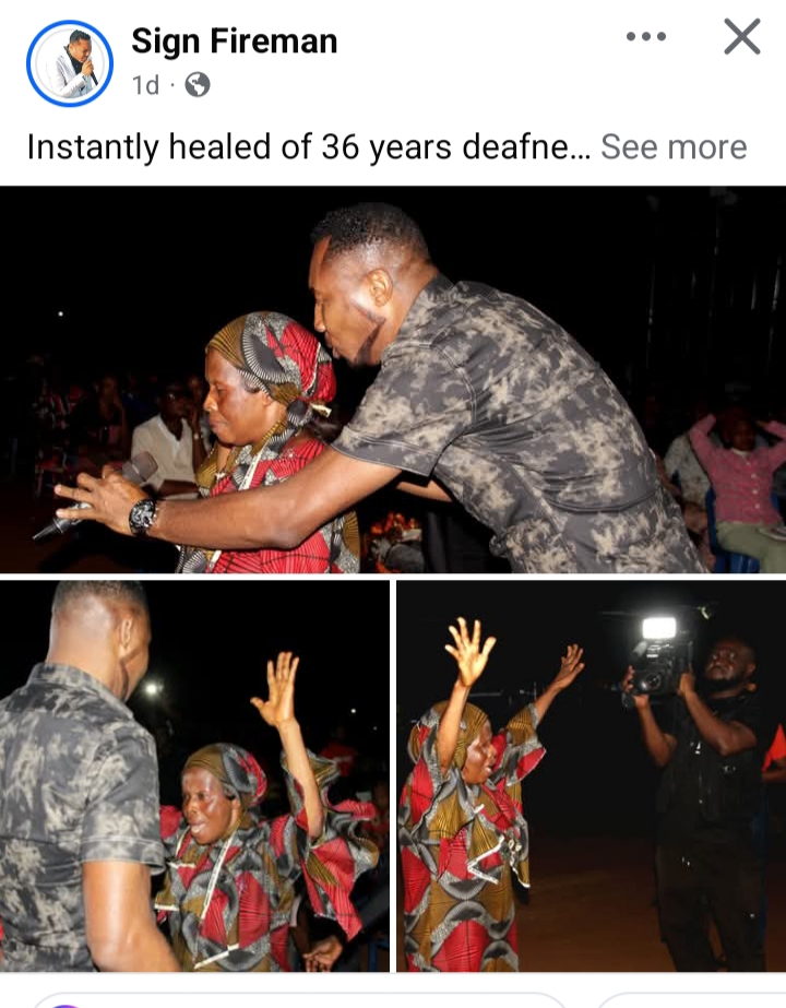 “DAY 1, UMUAHIA BIG MIRACLE INVASION — WITH SIGN FIREMAN. “Details: The deafness was that of the left ear.”
