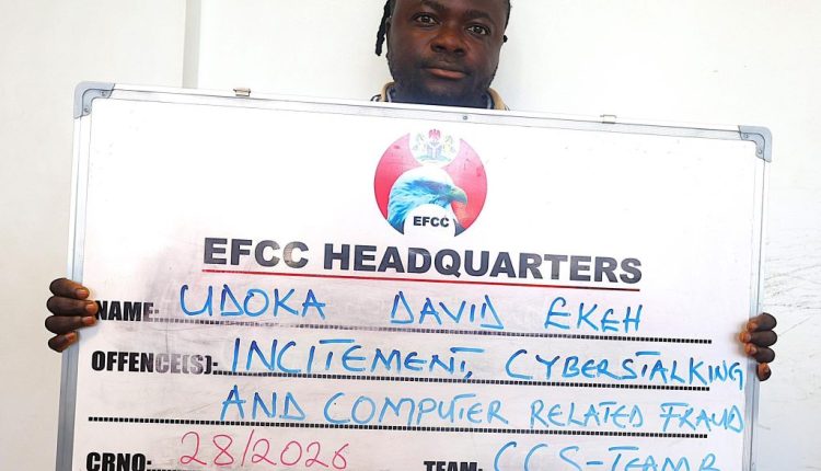 Operatives of the Economic and Financial Crimes Commission (EFCC) have arrested Udoma David Ekeh, a Tiktok user, for spreading false information about the Commission and its officers.