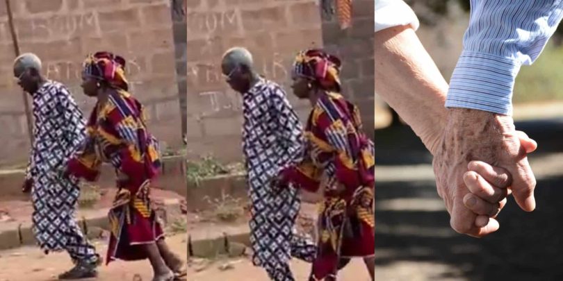 A touching photo of an elderly couple walking hand in hand has gone viral, with many calling it the true definition of “till death do us part.”