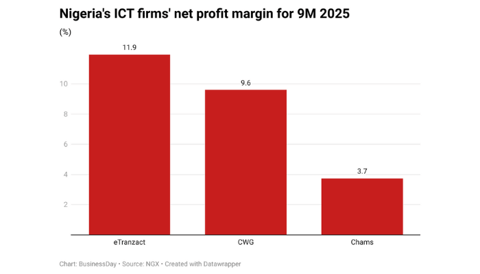 Nigeria’s listed ICT companies recorded significantly different net profit margins in the first nine months of 2025, with eTranzact leading the pack according to a new analysis by BusinessDay.