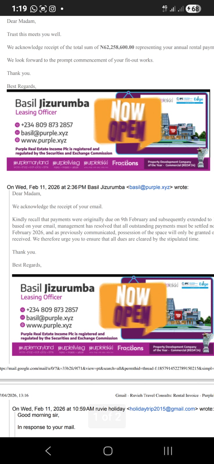 A simmering dispute between a Nigerian travel agency, Ruvieh Consult and Travel, and the management of Purple Mall in Lekki, Lagos, has escalated into allegations of corporate intimidation, economic suppression, and unlawful eviction, raising fresh concerns about the treatment of indigenous businesses in Nigeria’s commercial spaces.
