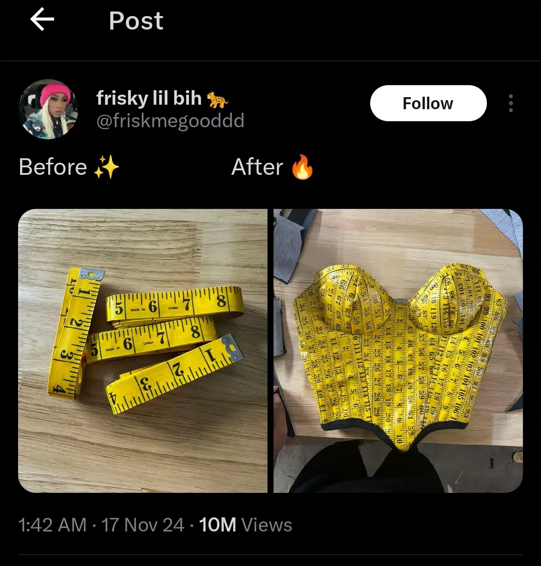 A fashion designer shakes the internet by creating a dress using just measuring tape and flaunting it on social media.