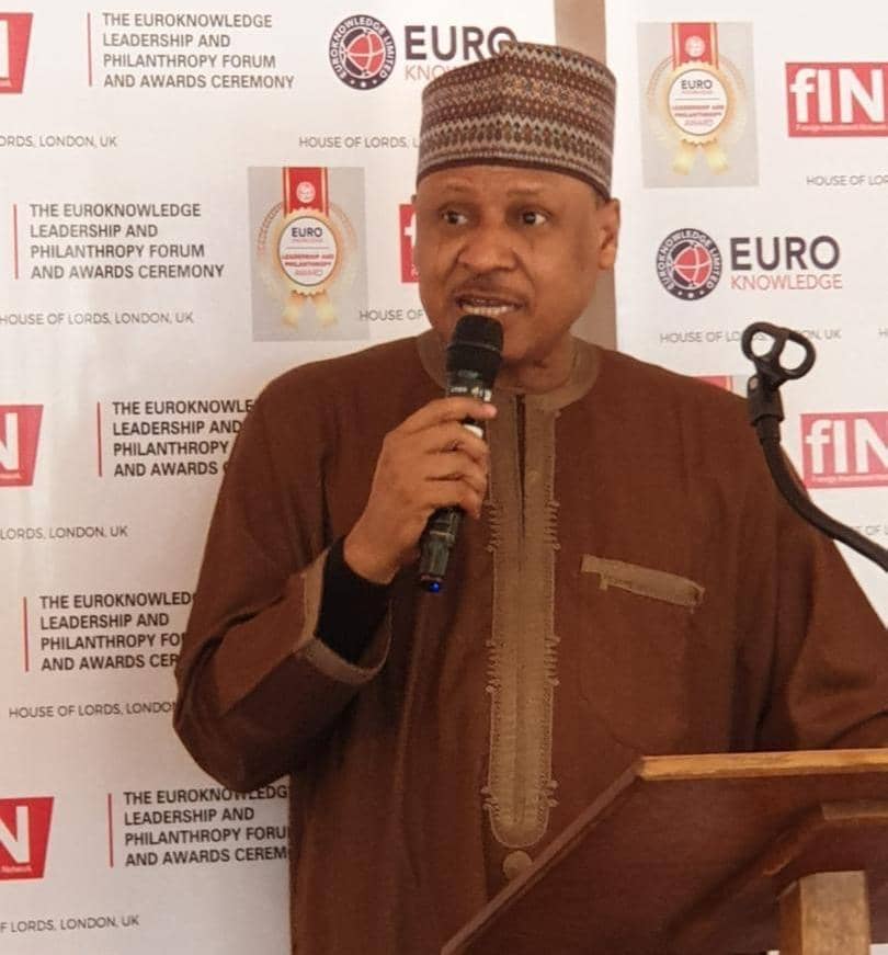 Photo: Minister of Information and National Orientation, Mohammed Idris, delivering an address at the Renewed Hope Global Dialogue in London, United Kingdom, on Saturday
