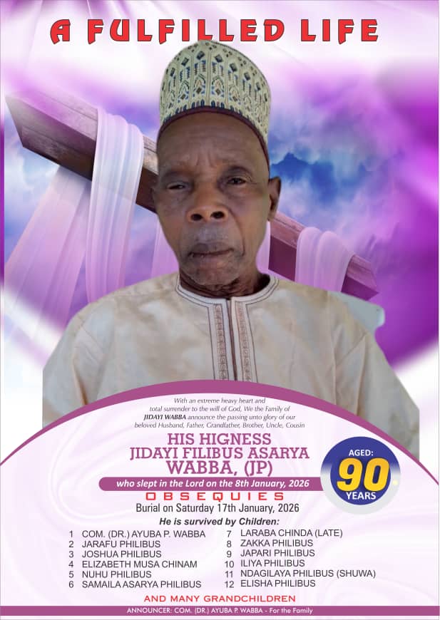 The death has occurred of Mallam Jidayi Filibus Asarya Wabba, the District Head of Sabongari-Puba, Askira/Uba LGA, Borno State. A devout Christian, he was aged 90 years.