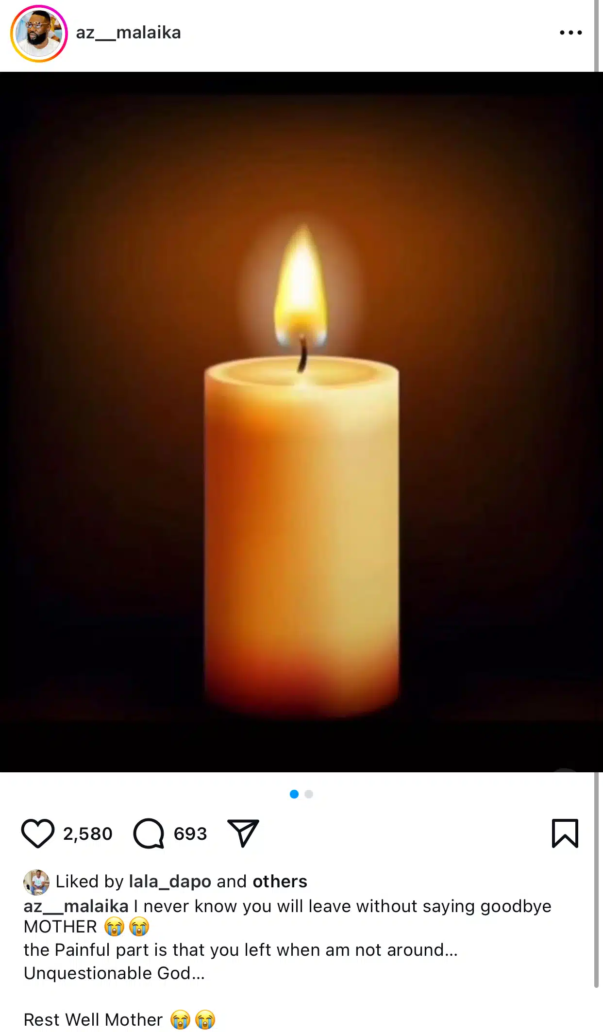 “The painful part is that you left when I was not around. Unquestionable God. Rest well, mother.”
