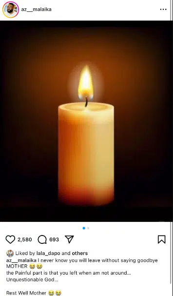 Fans and well-wishers flooded the comment section with condolences, offering heartfelt sympathy to KS1 Malaika, following his mother’s death.