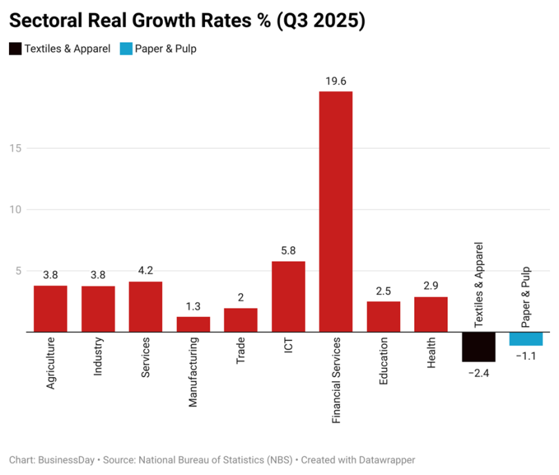 Reports GDP:Where does Nigeria’s economy stand after the Q3 numbers? 2 days ago Nigeria’s economy expanded by 3.98 percent year on year in the third quarter of 2025, according to new data from read more GDP:Where does Nigeria’s economy stand after the Q3 numbers? FacebookXWhatsAppPinterestLinkedInEmail
