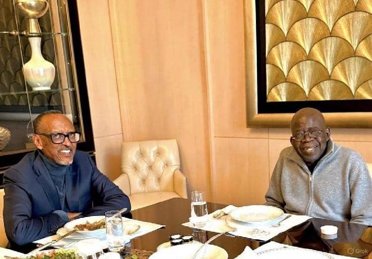 President Bola Tinubu reportedly met with Paul Kagame, the president of Rwanda, on Sunday in Paris, France.