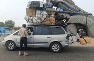 FRSC intercepts overloaded vehicle with passengers on piled goods