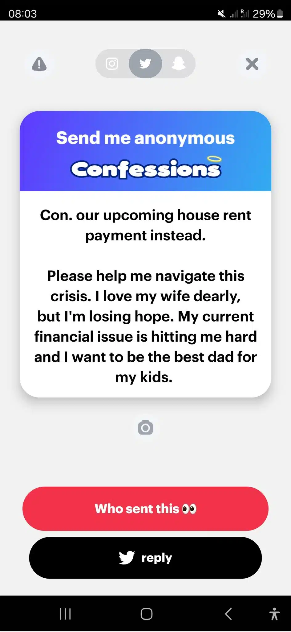 “This morning, I asked for sex again, but she reminded me about our upcoming house rent payment instead. Please help me navigate this crisis. I love my wife dearly, but I’m losing hope. My current financial issues are hitting me hard, and I want to be the best dad for my kids.”