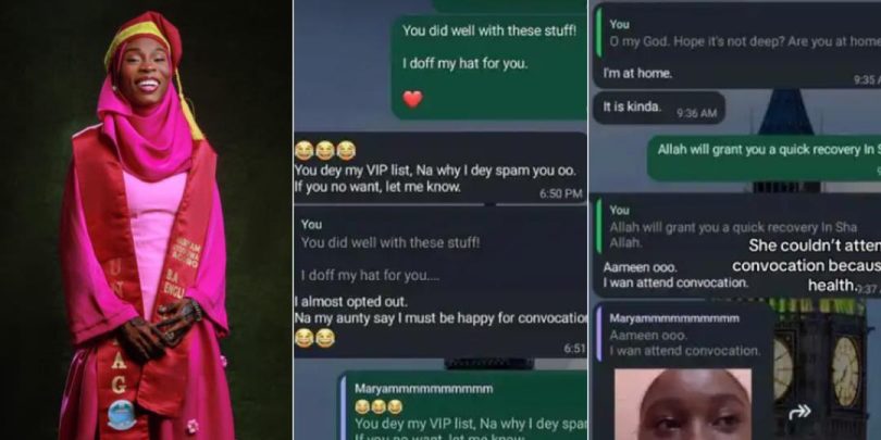 The heartbreaking last WhatsApp chat of Maryam Agoro, a University of Lagos (UNILAG) graduate who passed away a day after her convocation, has gone viral online.