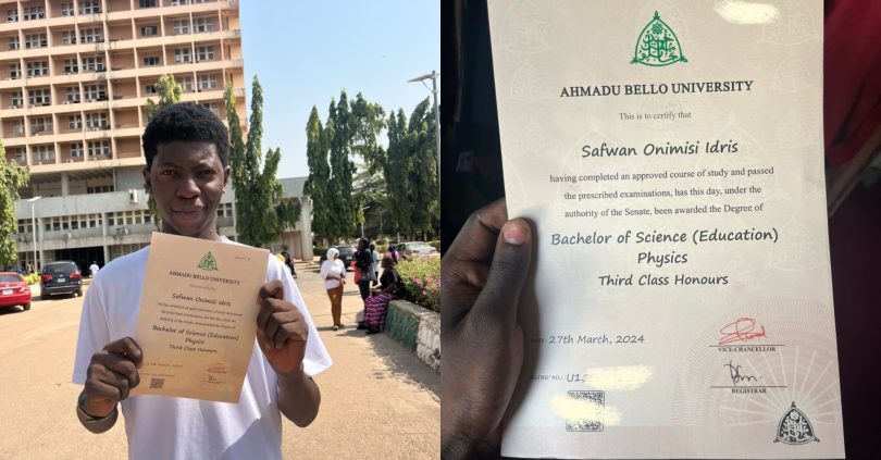 The graduate, identified with the X handle, @SafwanIdris, posted his degree certificate.