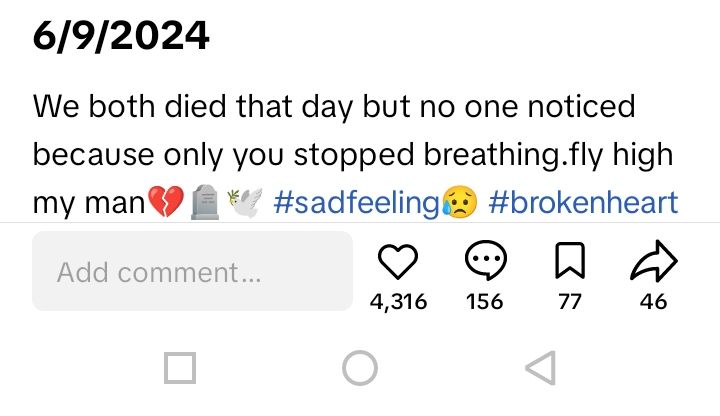 May his gentle soul keep resting with his maker. 6/9/2024. We both died that day but no one noticed because only you stopped breathing.fly high my man. I felt so guilty always.