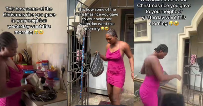 A Nigerian woman who received Christmas rice from her neighbour has gone viral online after throwing away the food.