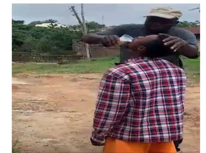 In a short video posted by Osun journalist Isaac Haastrup, the chief was seen holding a cutlass and later forcing the young man to drink from a cup containing the poisonous substance.