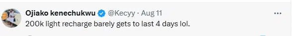 The man who is known as @Kecyy had taken to social media, X, to lament over the amount he spent on electricity.