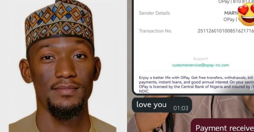 In his tweet, @sarkinnomaa shared screenshot of a 50‑naira credit alert from his girlfriend, along with a screenshot of the transaction.