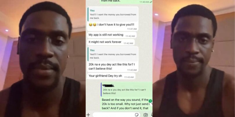 In a viral WhatsApp chat screen recording shared on X (formerly Twitter) by @Teniola, the man recalled lending her ₦20k and even shared his account details to make repayment.