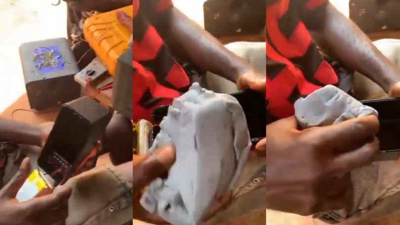 He discover that the device was a poorly assembled counterfeit containing just a single working battery and an unusual paste-like material resembling fufu filling the remaining internal space.