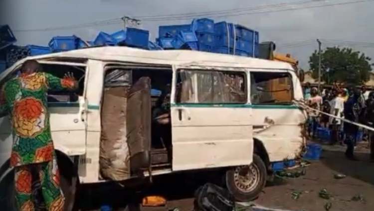 A trending video online showed an 18-seater commercial bus travelling from Lagos trapped beneath a truck coming from Ibadan, which was reportedly attempting a U-turn near the NASFAT area.
