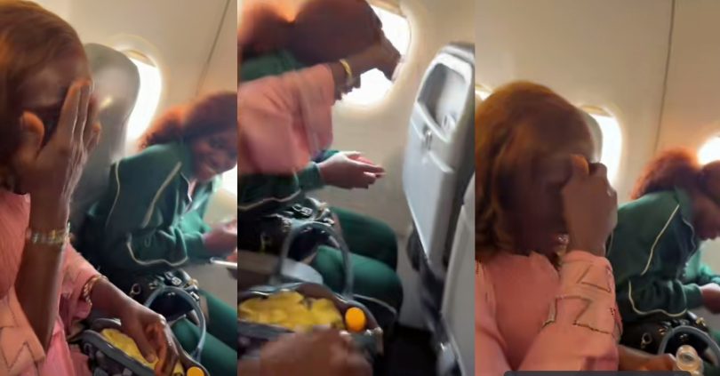 A Nigerian lady has shared a video capturing her mother’s act as she boarded an airplane for the first time.