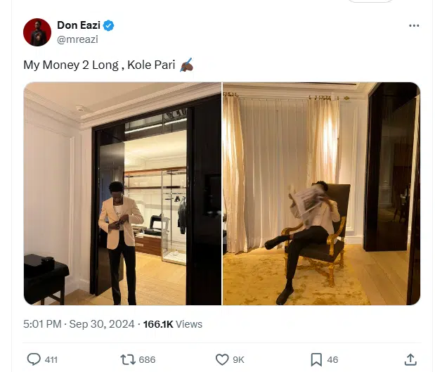 seth_wave penned: “Una really think say Mr eazi no get money?”