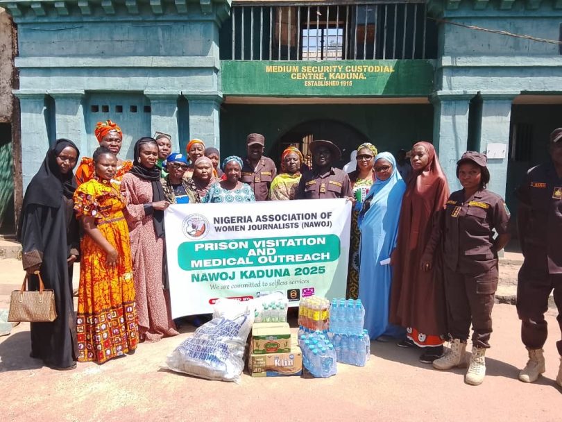 The Nigeria Association of Women Journalists (NAWOJ), Kaduna State chapter, on Wednesday paid a humanitarian visit to the female wing of the Medium Security Custodial Centre, Kaduna, donating essential items to over 120 inmates.