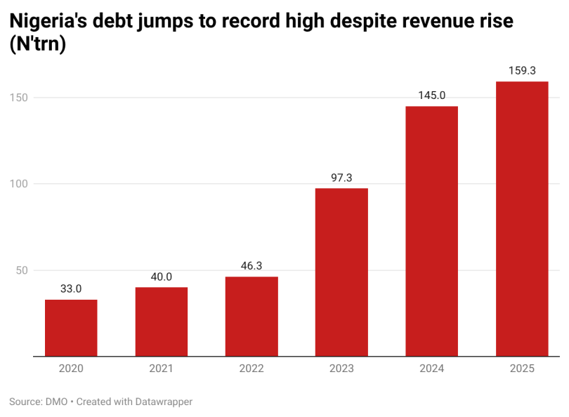 Nigeria’s public debt climbed to a record high in 2025, driven by both domestic and foreign borrowings, even as government revenues improved on the back of stronger collections and reforms. Data from the Debt Management Office showed Africa’s most populous nation borrowed N159.27 trillion as at the end of 31st December 2025, compared to N145 […]