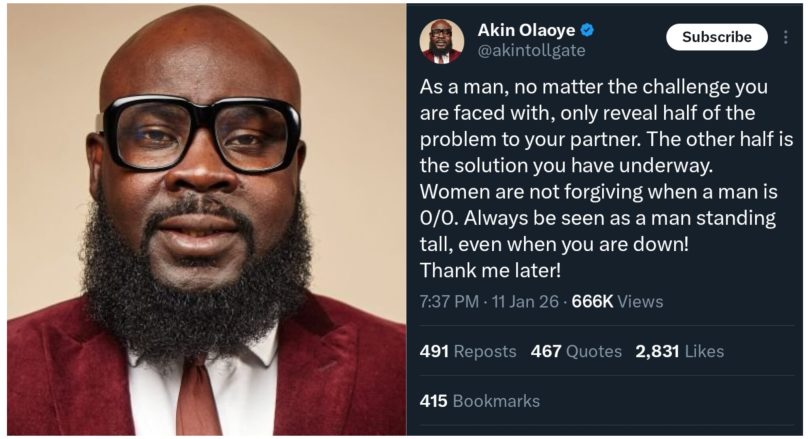 A social media post of a man advising men to hide parts of their problems from their partners has sparked intense debate and mixed reactions across Nigeria’s online space.