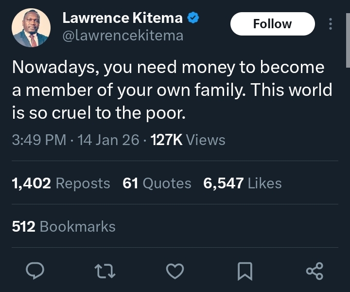 In a post shared on X, formerly Twitter, the man, identified as Lawrence Kitema, expressed frustration over what he described as growing cruelty towards poor people.