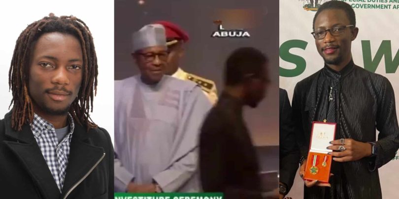 Some cybernauts dug up an old video which captured the sort of look the ex-president Buhari gave the Co-Founder of Paystack after he wore lipstick and makeup to receive his OON (Order of Niger) award at the 2022 National Honours.