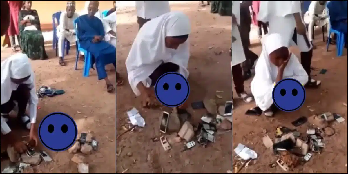 A video that has sparked reactions online shows students destroying their phones after reportedly being asked by the Parents-Teachers Association of their school to do so due to poor academic performance.