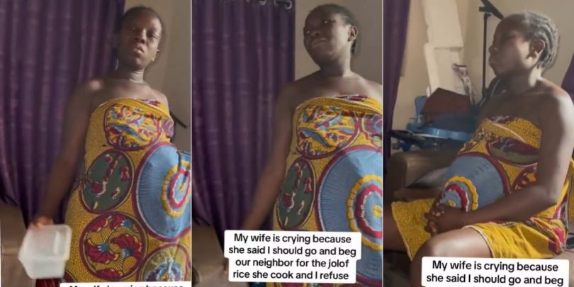 Pregnant wife bursts into tears as husband refuses to go beg neighbour Jollof rice
