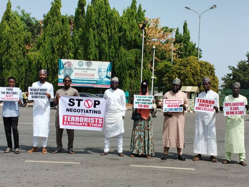 Protesters marched with placards bearing inscriptions such as “Restore Security in the 36 States,” “Release the 253 Abducted Pupils,” “Stop Negotiations with Bandits,” “Declare State of Emergency on Insecurity,” and “Secure Our Borders Now.” They urged the federal government to act swiftly to protect citizens and rescue all Nigerians still in captivity.