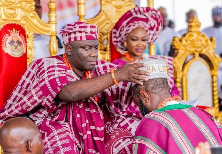 The chieftaincy installation ceremony was held on Sunday at the Alaafin’s palace in Oyo town, Oyo State.