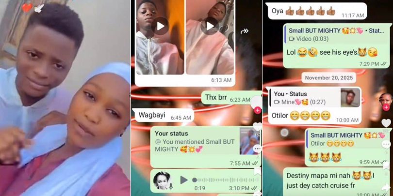 The young lady posted a video showing her WhatsApp conversation with Destiny Boy on her TikTok page @stone.heart9993.