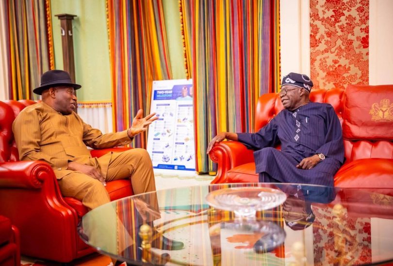 President Bola Tinubu on Wednesday held a closed-door meeting with former President Goodluck Jonathan at the Presidential Villa, Abuja.