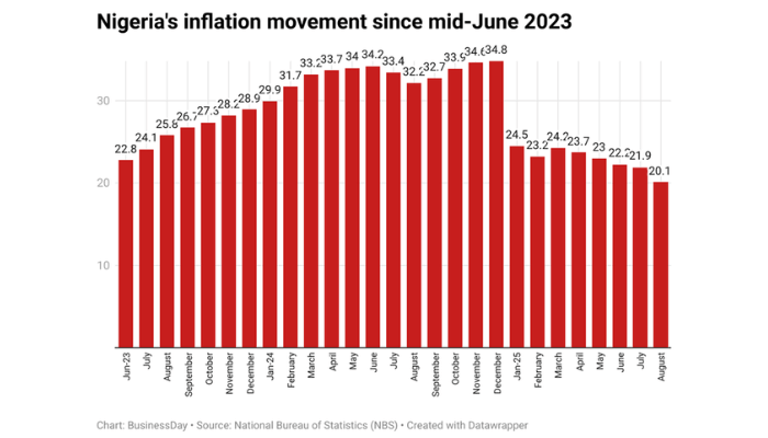 Nigeria’s inflation story is finally changing direction. After reaching a record 34.8 per percent in December 2024, inflation has dropped steadily to 20.12 percent by August 2025, the lowest in more than two years. The turning point came after the government rebased inflation data in January 2025, giving a clearer picture of price changes under the new economic reforms.